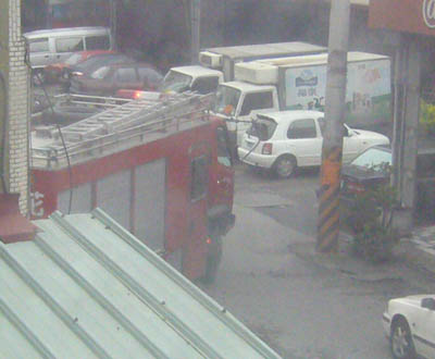 今天下午,突然刺耳的消防車警笛一直響,聲音愈來愈近,居然到我們家的巷子來了 以為是附近失火哩~ 結果是來做個迴轉,轉完又開走了 好險~