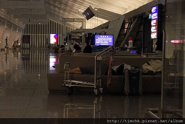 一團陸客團出現在我們週圍,音量十分大,人少回音更大,實在很難再睡了,而在地陪的一聲令下,大家開始尋找附近坐位.有位大嬸直接來擠我太太坐的旁邊,把我太太都擠走了,實在是十分兇狠.算了,我也請太太準備去排隊,以免等等人更多要排更久.不過,我們還是不知道幾點開始開櫃,排隊的人也漸漸多了起來.