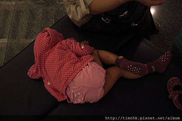 趕快找個平坦的椅子給她睡,這點要稱讚一下桃園機場,好險不是那種一個一個的候診椅(有扶手那種),而是整片的沙發,讓大家可以好好躺平休息!