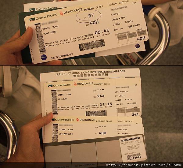 一次拿到一本登機證,這才叫霸氣!不過,到了LAX才知道,雖然有LAX->STL的登機證,也有坐位,但還是得到美國航空AA的櫃台換他們的登機證(會有gate number)