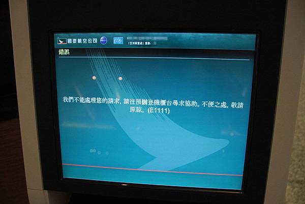 我們只好悻悻然的離開到旁邊,看到有自助登機KIOSK,決定來試試自助報到系統看看