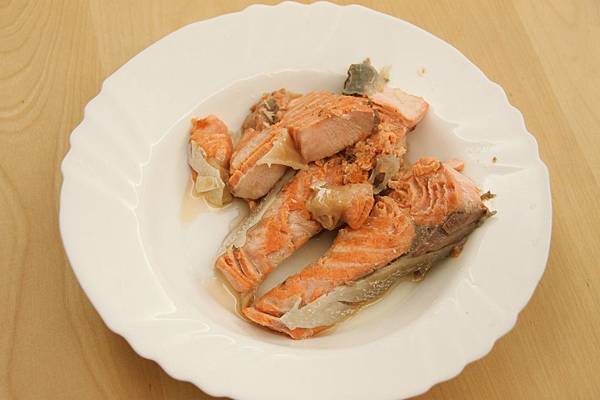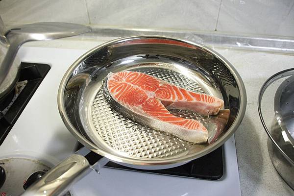2.鮭魚可以像阿基師教人煎魚不脫皮那樣,試著抹些蛋汁上去,然後鍋底用餐巾紙抹上均勻油底,也許可以煎得更漂亮
