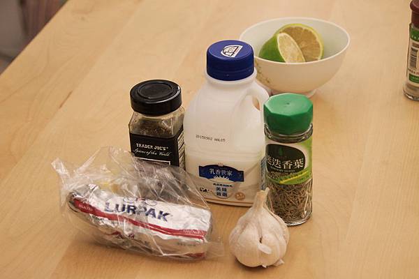 今天我們就不做那麼多了,畢竟還要搞個酸芥末也麻煩,改以蒜泥奶油醬來代替,也算是模仿前幾天去某foody goody店吃到的鮭魚排吃法.