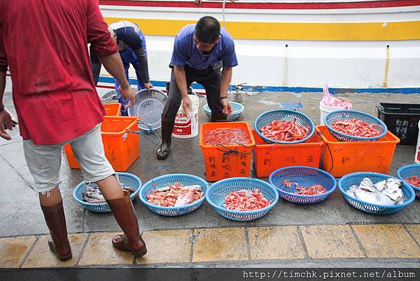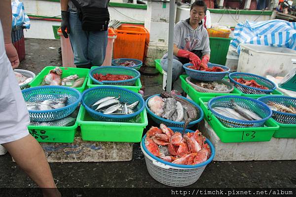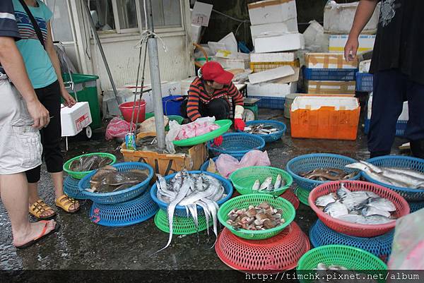 大溪雨港有趣的就是他們剛下船的雨貨拍賣,今天沒有拍賣,真是可惜.不過還是可以看到許多漁販在賣魚,各種魚蝦貝,對於小朋友很棒唷!