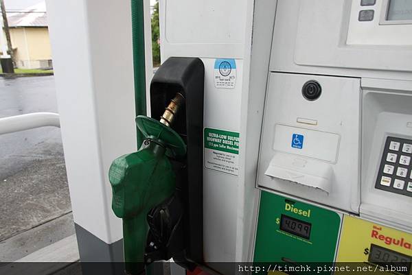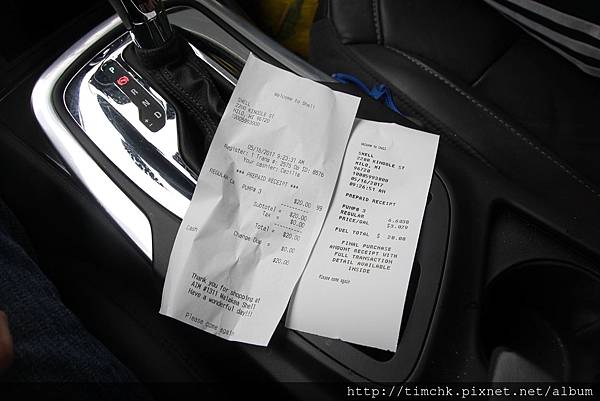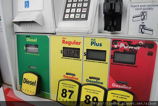 要加多少呢? 人家都說美國油比較便宜,那就加個600元台幣好了.在台灣加600元台幣油箱大概可以半滿多吧.