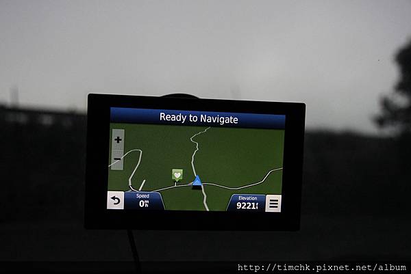 Garmin顯示著太陽下山了.趕緊找地方停車向西邊看去