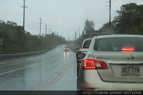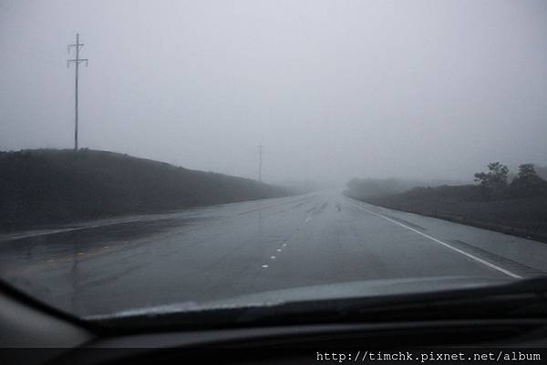 雨愈下愈大,當地人依然保持60往前衝...而我只能一直減速,50都覺得太快...