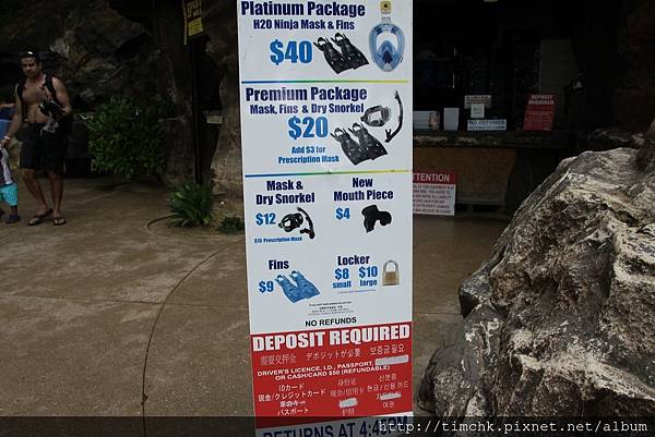 也可以在路上拿傳單,很多私人旅遊團都有接駁Hanauma Bay的行程,不需自己開車.他們也有許多套餐,包含租借浮潛配備等,可以自行參考
