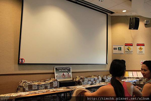 大家都靠在欄杆上準備要看影片...結果解說員宣佈,今天投影機故障,所以用講的...呵呵