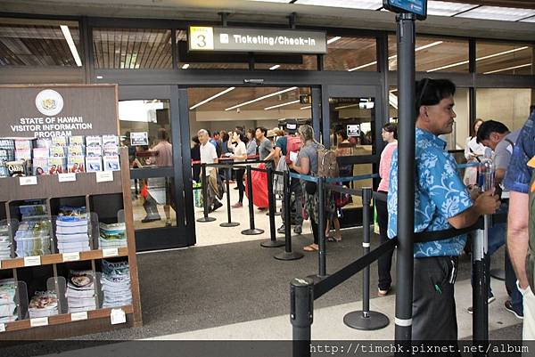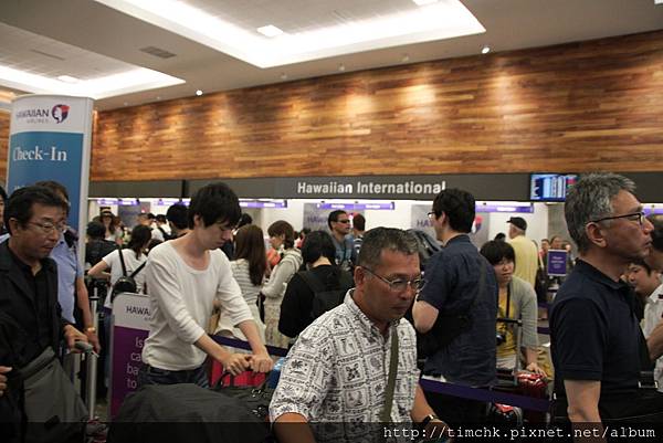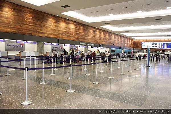 一到Hawaiian Airlines的航廈,也就是Inter-island Terminal,差點沒暈倒.人也太多了吧.整班飛機的人都在這裡排隊.
