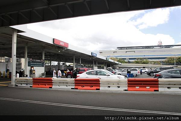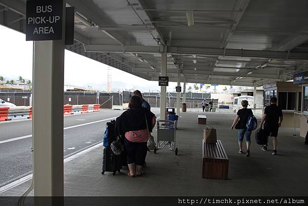 我們走到許多人等車的地方,準備搭接駁車去航廈