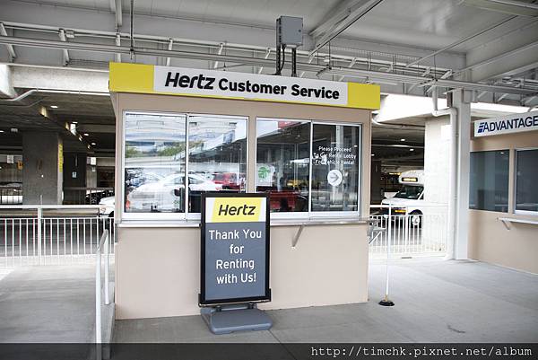 最後會在這個十字路口看到標示要向右前方轉進去(藍箭頭).幾乎所有的還車都在這喔