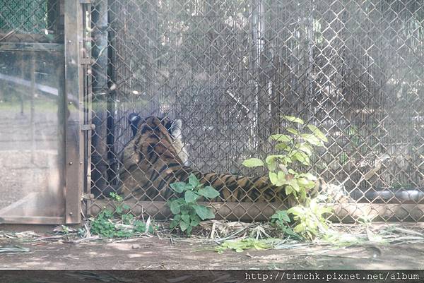 胎哥!!!老虎!!!躲在籠裡休息.太熱了
