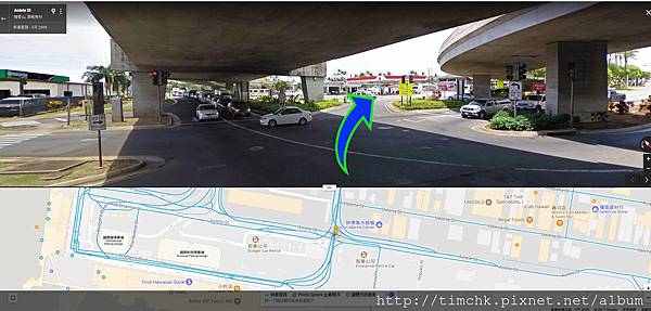 往機場的路叫Nimitz Hwy (H-92),他是在高速公路下的平面道路.跟著導航會在某個地方左轉.一樣是在高架道路的下方平面道路